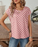 SPECIFICATIONS Top Type: Blouses Style: Casual Material: Denim Occasion: Daily Neckline: Round Neck Pattern Type: Color Block Sleeve Type: Regular sleeve Sleeve Length: Short Sleeve Fit Type: Regular Season: Spring,Summer Details: Hollow Out Package Includes: 1 x Blouse SIZE TABLE Size Bust Length Sleeves Shoulder CM INCH CM I...