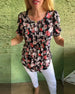 Round Neck Puff Sleeve Pleated Floral Blouse