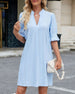 SPECIFICATIONS Style: Casual Material: Cotton Blends Dress Type: Shift dress Dress Length: Above-knee Neckline: V neck_V Pattern Type: Solid Color Sleeve Type: Ruffle Sleeve Sleeve Length: Half Sleeve Details: Ruffle Fit Type: Regular Season: Spring,Summer Occasion: Daily Package Includes: 1 x Dress SIZE TABLE Size Bust Length CM IN...
