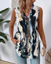 V-Neck Sleeveless Printed Irregular Tank Top