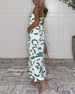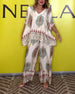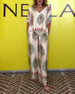 Temperament V-Neck Cashew Flower Wide-Leg Set