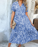 SPECIFICATIONS Style: Casual Material: Cotton Blends Dress Type: A-Line Dress Length: Midi Neckline: Shirt Collar Pattern Type: Print Sleeve Type: Regular sleeve Sleeve Length: Short Sleeve Details: Pocket,Buttons Fit Type: Regular Season: Spring,Summer,Fall Occasion: Daily Package Includes: 1 x Dress SIZE TABLE Size Bust Sleeve...