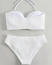 Halter Solid Color Striped Swimsuit
