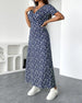 SPECIFICATIONS Style: Elegant Material: Cotton Blends Dress Type: A-Line Dress Length: Maxi Neckline: V neck_V Pattern Type: Print Sleeve Type: Regular sleeve Sleeve Length: Short Sleeve Fit Type: Regular Season: Spring,Summer Occasion: Daily Package Includes: 1 x Dress SIZE TABLE Size Bust Length Sleeves Shoulder CM INCH CM IN...