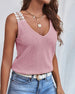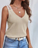 SPECIFICATIONS Top Type: Tank Top Style: Casual Material: Polyester Occasion: Daily Neckline: V neck_V Pattern Type: Solid Color Sleeve Type: Regular sleeve Sleeve Length: Sleeveless Fit Type: Regular Season: Spring,Summer Details: Patchwork,Lace Package Includes: 1 x Tank Top SIZE TABLE Size Bust Length CM INCH CM INCH S 96 37.8...