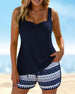 SPECIFICATIONS Style: Vacation Material: 15% Spandex,85% Polyester Occasion: Vacation Pattern Type: Print Sleeve Length: Sleeveless Top Type: Tankini Bra Type: Wireless Bra Bottom Type: Shorts Fit Type: Skinny Details: Pocket,Backless,Lace Up Package Includes: 1 x Tankini SIZE TABLE Size Bust Waist Hip Under bust CM INCH CM INCH CM INCH CM...