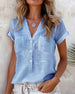 SPECIFICATIONS Top Type: Blouses Style: Casual Material: Cotton Blends Occasion: Daily Neckline: V neck_V Pattern Type: Solid Color Sleeve Type: Regular sleeve Sleeve Length: Short Sleeve Fit Type: Regular Season: Spring,Summer Details: Buttons Package Includes: 1 x Blouse SIZE TABLE Size Bust Length CM INCH CM INCH S 96 37.80 6...