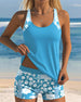 Leaf Print U-Neck Tank Top Swimsuit