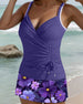 V-Neck Ribbed Skirt Printed Swimsuit