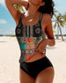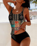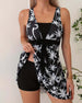 Tie-Strap Printed Two-Piece Skirt Swimsuit