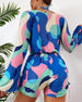 Temperament Printed Lantern Sleeves Casual Dress Set