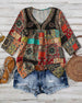 SPECIFICATIONS Top Type: T-shirt Style: Casual,Vintage Material: Cotton Blends Occasion: Daily Neckline: V neck_V Pattern Type: Print Sleeve Type: Regular sleeve Sleeve Length: Short Sleeve Fit Type: Regular Season: Spring,Summer,Fall Details: Shirred Package Includes: 1 x T-shirt SIZE TABLE Size Bust Length CM INCH CM INCH S 95 37.40...