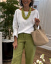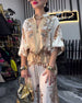 SPECIFICATIONS Style: Casual Top Type: Tops Material: Cotton Blends Pattern Type: Print Neckline: Stand Collar Sleeve Type: Regular sleeve Sleeve Length: 3/4 Sleeve Pants Type: Wide Leg Pants Length: Long Waist Type: Mid Waist Fit Type: Regular Season: Spring,Summer Details: Pocket,Zipper Occasion: Daily Package Includes: 1 x Top, 1 x Pants SI...