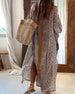 SPECIFICATIONS Style: Vacation Material: Cotton Blends Dress Type: Smock Dress Length: Maxi Neckline: V neck_V Pattern Type: Print Sleeve Type: Bat sleeve Sleeve Length: 3/4 Sleeve Details: Slit Fit Type: Regular Season: Spring,Summer,Fall Occasion: Vacation Package Includes: 1 x Dress SIZE TABLE Size Bust Length CM INCH CM INC...