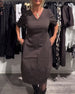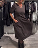 SPECIFICATIONS Style: Casual Material: Cotton Blends Dress Type: A-Line Dress Length: Knee Length Neckline: V neck_V Pattern Type: Solid Color Sleeve Type: Regular sleeve Sleeve Length: Short Sleeve Details: Pocket Fit Type: Regular Season: Fall,Winter Occasion: Daily Package Includes: 1 x Dress SIZE TABLE Size Bust Length CM I...