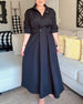 SPECIFICATIONS Style: Casual Material: Cotton Blends Dress Type: Shirt Dress Length: Maxi Neckline: Lapel Pattern Type: Solid Color Sleeve Type: Regular sleeve Sleeve Length: 3/4 Sleeve Fit Type: Regular Season: Fall,Winter Occasion: Daily,Work Package Includes: 1 x Dress SIZE TABLE Size Bust Length CM INCH CM INCH S 95 37.4 ...