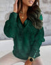 Casual V-Neck Leopard Print Lace Panel Blouse