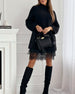 SPECIFICATIONS Style: Chic Material: Cotton Blends,Sequins Dress Type: Shift dress Dress Length: Knee Length Neckline: Round Neck Pattern Type: Solid Color Sleeve Type: Lantern Sleeve Sleeve Length: Long Sleeve Details: Shirred Fit Type: Regular Season: Fall,Winter Occasion: Daily Package Includes: 1 x Dress SIZE TABLE Size Bust ...