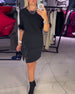 SPECIFICATIONS Style: Casual Material: Cotton Blends Dress Type: A-Line Dress Length: Knee Length Neckline: Round Neck Pattern Type: Solid Color Sleeve Type: Regular sleeve Sleeve Length: 3/4 Sleeve Details: Cut Out,Pearl Fit Type: Regular Season: Fall,Winter Occasion: Daily Package Includes: 1 x Dress SIZE TABLE Size Bust Length C...