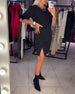 SPECIFICATIONS Style: Casual Material: 95% Polyester, 5% Spandex Dress Type: Shift dress Dress Length: Knee Length Neckline: Round Neck Pattern Type: Solid Color Sleeve Type: Regular sleeve Sleeve Length: Half Sleeve Details: Hot Drilling Fit Type: Regular Season: Fall,Winter Occasion: Daily Package Includes: 1 x Dress SIZE TABLE Size B...