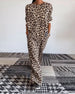 SPECIFICATIONS Style: Casual Top Type: Tops Category: Sets Material: Cotton Blends Pattern Type: Leopard Neckline: Round Neck Sleeve Type: Regular sleeve Sleeve Length: Half Sleeve Pants Type: Wide Leg Pants Length: Long Waist Type: Mid Waist Fit Type: Regular Season: Fall,Winter Details: Pocket Occasion: Daily Package Includes: 1 x Top, 1 x P...