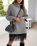 SPECIFICATIONS Style: Vintage Dress Type: Shift dress Category: Sets Material: Cotton Blends,Acrylic,Polyester Pattern Type: Solid Color Neckline: High Neck Sleeve Type: Regular sleeve Sleeve Length: Long Sleeve Dress Length: Knee Length Waist Type: Mid Waist Fit Type: Regular Season: Fall,Winter Details: Patchwork Occasion: Daily Package Inc...