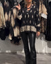 SPECIFICATIONS Top Type: Blouses Style: Casual Material: 100% Polyester Occasion: Daily Neckline: V neck_V Pattern Type: Print Sleeve Type: Regular sleeve Sleeve Length: 3/4 Sleeve Fit Type: Regular Season: Fall,Winter Details: Tassel Package Includes: 1 x Blouse SIZE TABLE Size Bust Length Sleeves CM INCH CM INCH CM INCH S 102 40.1...