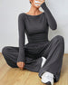 SPECIFICATIONS Style: Casual Top Type: Tops Category: Sets Material: Polyester Pattern Type: Solid Color Neckline: Round Neck Sleeve Type: Regular sleeve Pants Type: Wide Leg Pants Length: Long Fit Type: Regular Season: Fall,Winter Details: Pocket Occasion: Daily Package Includes: 1 x Top, 1 x Pants SIZE TABLE Size Bust Length Wa...