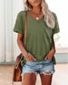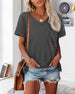 SPECIFICATIONS Top Type: T-shirt Style: Casual,Business Material: Cotton,Spandex Occasion: Daily,Work Neckline: V neck_V Pattern Type: Solid Color Sleeve Type: Regular sleeve Sleeve Length: Short Sleeve Fit Type: Regular Season: Spring,Summer,Fall Details: Pocket Package Includes: 1 x T-shirt SIZE TABLE Size Bust Length Sleeve Length CM...
