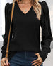SPECIFICATIONS Top Type: Tops Style: Casual Material: Cotton Blends Occasion: Daily Neckline: V neck_V Pattern Type: Solid Color Sleeve Type: Regular sleeve Sleeve Length: Long Sleeve Fit Type: Regular Season: Fall,Winter Package Includes: 1 x Top SIZE TABLE Size Bust Waist Shoulder Sleeves CM INCH CM INCH CM INCH CM INCH XS 84 33....