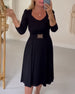 Fashion solid color round neck hip-wrapped long sleeve dress