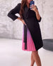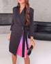 SPECIFICATIONS Style: Chic Material: Cotton Blends Dress Type: A-Line Dress Length: Knee Length Neckline: Lapel Pattern Type: Gradient Sleeve Type: Regular sleeve Sleeve Length: Nine Points Sleeve Details: Patchwork,Lace Up,Shirred Fit Type: Regular Season: Spring,Fall Occasion: Daily,Work Package Includes: 1 x Dress SIZE TABLE Size ...