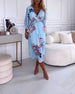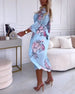 SPECIFICATIONS Style: Elegant Material: A: 100% Polyester; B: 97% Polyester, 3% Spandex Dress Type: A-Line Dress Length: Midi Neckline: V neck_V Pattern Type: Floral Sleeve Type: Ruffle Sleeve Sleeve Length: 3/4 Sleeve Details: Patchwork,Shirred Fit Type: Regular Season: Spring Occasion: Daily Package Includes: 1 x Dress SIZE TABLE ...
