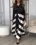 SPECIFICATIONS Style: Elegant Material: 100% Polyester Dress Type: A-Line Dress Length: Maxi Neckline: Lapel Pattern Type: Striped Sleeve Type: Regular sleeve Sleeve Length: Long Sleeve Details: Bandage,Buttons Fit Type: Regular Season: Spring,Fall Occasion: Daily Package Includes: 1 x Dress SIZE TABLE Size Bust Length Sleeves Sho...