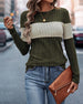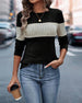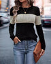 SPECIFICATIONS Top Type: Tops Style: Casual Material: Cotton Blends Occasion: Daily Neckline: Round Neck Pattern Type: Color Block Sleeve Type: Regular sleeve Sleeve Length: Long Sleeve Fit Type: Regular Season: Spring,Fall Package Includes: 1 x Top SIZE TABLE Size Bust Sleeves Length CM INCH CM INCH CM INCH S 90 35.43 64 25.2...