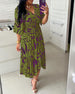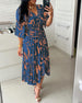 SPECIFICATIONS Style: Casual Material: 97% Polyester, 3% Spandex Dress Type: A-Line Dress Length: Midi Neckline: V neck_V Pattern Type: Print Sleeve Type: Regular sleeve Sleeve Length: 3/4 Sleeve Details: Lace Up,Shirred Fit Type: Regular Season: Spring,Summer Occasion: Daily Package Includes: 1 x Dress SIZE TABLE Size Bust Leng...