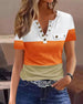 SPECIFICATIONS Top Type: Blouses Style: Casual Material: Cotton Blends Occasion: Daily Neckline: V neck_V Pattern Type: Color Block Sleeve Type: Regular sleeve Sleeve Length: Short Sleeve Fit Type: Regular Season: Summer Details: Buttons Package Includes: 1 x Blouse SIZE TABLE Size Bust Length CM INCH CM INCH S...