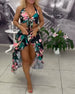 SPECIFICATIONS Style: Vacation Material: 15% Spandex,85% Polyester Occasion: Vacation Neckline: Halter Pattern Type: Print Sleeve Length: Sleeveless Top Type: Bikini,Cover up Bra Type: Wireless Bra Bottom Type: Natural Fit Type: Regular Season: Spring,Summer Details: Backless,Lace Up Package Includes: 1 x Bikini,1 x Cover up SIZE TABLE ...