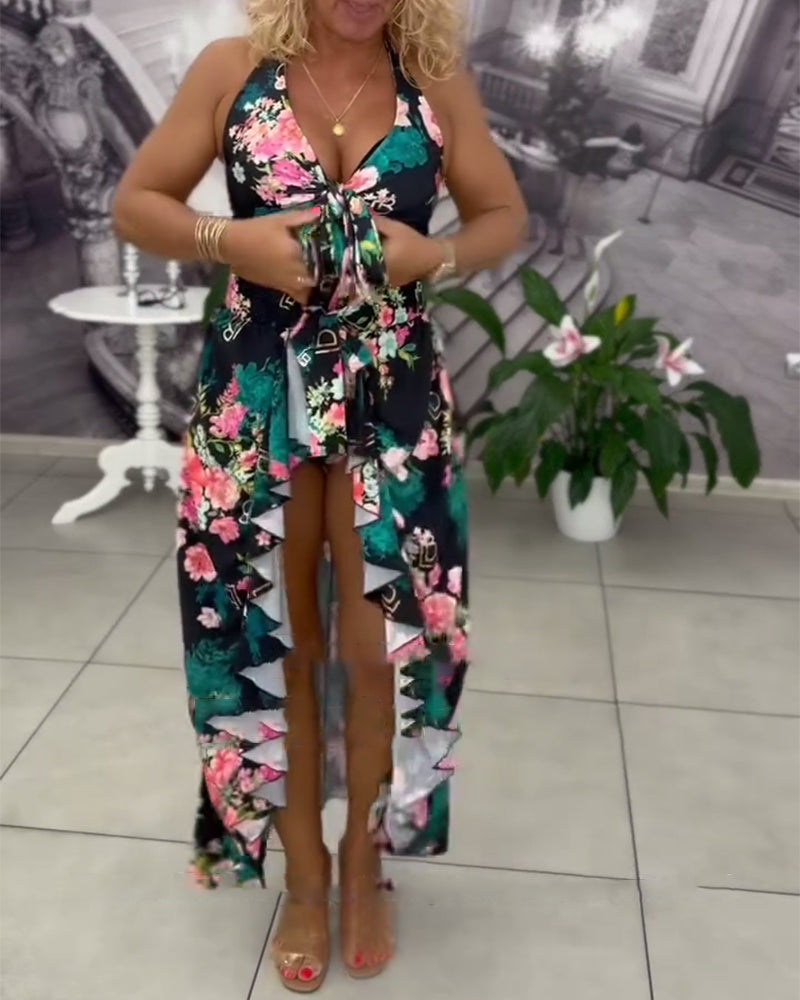 SPECIFICATIONS Style: Vacation Material: 15% Spandex,85% Polyester Occasion: Vacation Neckline: Halter Pattern Type: Floral,Print Sleeve Length: Sleeveless Top Type: Bikini,Cover up Bra Type: Wireless Bra Bottom Type: Natural Fit Type: Regular Season: Spring,Summer Details: Backless,Lace Up Package Includes: 1 x Bikini,1 x Cover up SIZE TABLE ...