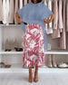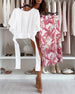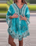 Colorful floral print V-neck three-quarter sleeve casual shirt
