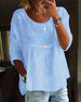 SPECIFICATIONS Top Type: Blouses Style: Casual Material: Cotton Blends Occasion: Daily Neckline: V neck_V Pattern Type: Print Sleeve Type: Dropped shoulder Sleeve Length: 3/4 Sleeve Fit Type: Regular Season: Spring,Summer Package Includes: 1 x Blouse SIZE TABLE Size Bust Length CM INCH CM INCH S 104 40.94 68 26.77 M 108 42.52 6...