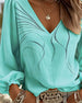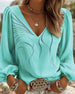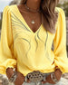 SPECIFICATIONS Top Type: Blouses Style: Casual Material: Cotton Blends Occasion: Daily Neckline: V neck_V Pattern Type: Solid Color Sleeve Type: Regular sleeve Sleeve Length: Long Sleeve Fit Type: Regular Season: Fall,Winter Details: Buttons,Lace Package Includes: 1 x Blouse SIZE TABLE Size Bust Length CM INCH CM INCH S 97 38.19...