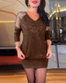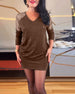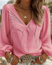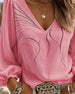 SPECIFICATIONS Top Type: Tops Style: Casual Material: Cotton Blends,Sequins Occasion: Daily Neckline: V neck_V Pattern Type: Sequin,Solid Color Sleeve Type: Regular sleeve Sleeve Length: 3/4 Sleeve Fit Type: Regular Season: Spring,Fall,Winter Details: Patchwork Package Includes: 1 x Top SIZE TABLE Size Bust Length CM INCH CM INCH ...