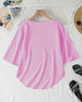 SPECIFICATIONS Top Type: Blouses Style: Casual Material: Cotton Blends Occasion: Daily Neckline: Round Neck Pattern Type: Solid Color Sleeve Type: Bat sleeve Sleeve Length: Short Sleeve Fit Type: Regular Season: Spring,Summer Details: Lace Up Package Includes: 1 x Blouse SIZE TABLE Size Bust Length CM INCH CM INCH S 95 37.40 65 25.59...