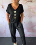 FEATURES: Lightweight and Comfortable Material: Made from a lightweight fabric that offers excellent breathability, ensuring comfort in all seasons. Stylish Small V-Neck Design: Features a small V-neck design that enhances the overall style while maintaining a relaxed look. Sequined Pocket Detail: The chest pocket is adorned with sequins,...