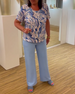 SPECIFICATIONS Top Type: Blouses Style: Casual Material: Cotton Blends Occasion: Daily Neckline: Round Neck Pattern Type: Floral,Print Sleeve Type: Ruffle Sleeve Sleeve Length: Short Sleeve Fit Type: Regular Season: Spring,Summer Details: Patchwork,Ruffle Package Includes: 1 x Blouse SIZE TABLE Size Bust Length CM INCH CM INCH S...