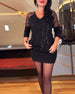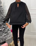 Sexy V-Neck Mesh And Solid Color Sequin Top