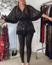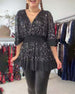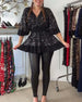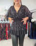 Balloon sleeve round neck sequin top