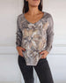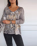 SPECIFICATIONS Top Type: Tops Style: Casual Material: Cotton Blends Occasion: Daily Neckline: V neck_V Pattern Type: Print Sleeve Type: Lantern Sleeve Sleeve Length: Long Sleeve Fit Type: Regular Season: Fall,Winter Package Includes: 1 x Top SIZE TABLE Size Bust Length CM INCH CM INCH S 92 36.22 68 26.77 M 96 37.8 69.5 27.36 L 100 3...