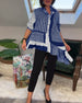 SPECIFICATIONS Top Type: Shirt Style: Chic Material: 40% Cool Kotton,60% Polyester Occasion: Daily Neckline: Lapel Pattern Type: Geometric Print Sleeve Type: Regular sleeve Sleeve Length: 3/4 Sleeve Fit Type: Regular Season: Spring,Fall Details: Patchwork,Buttons Package Includes: 1 x Shirt SIZE TABLE Size Bust Front Len...